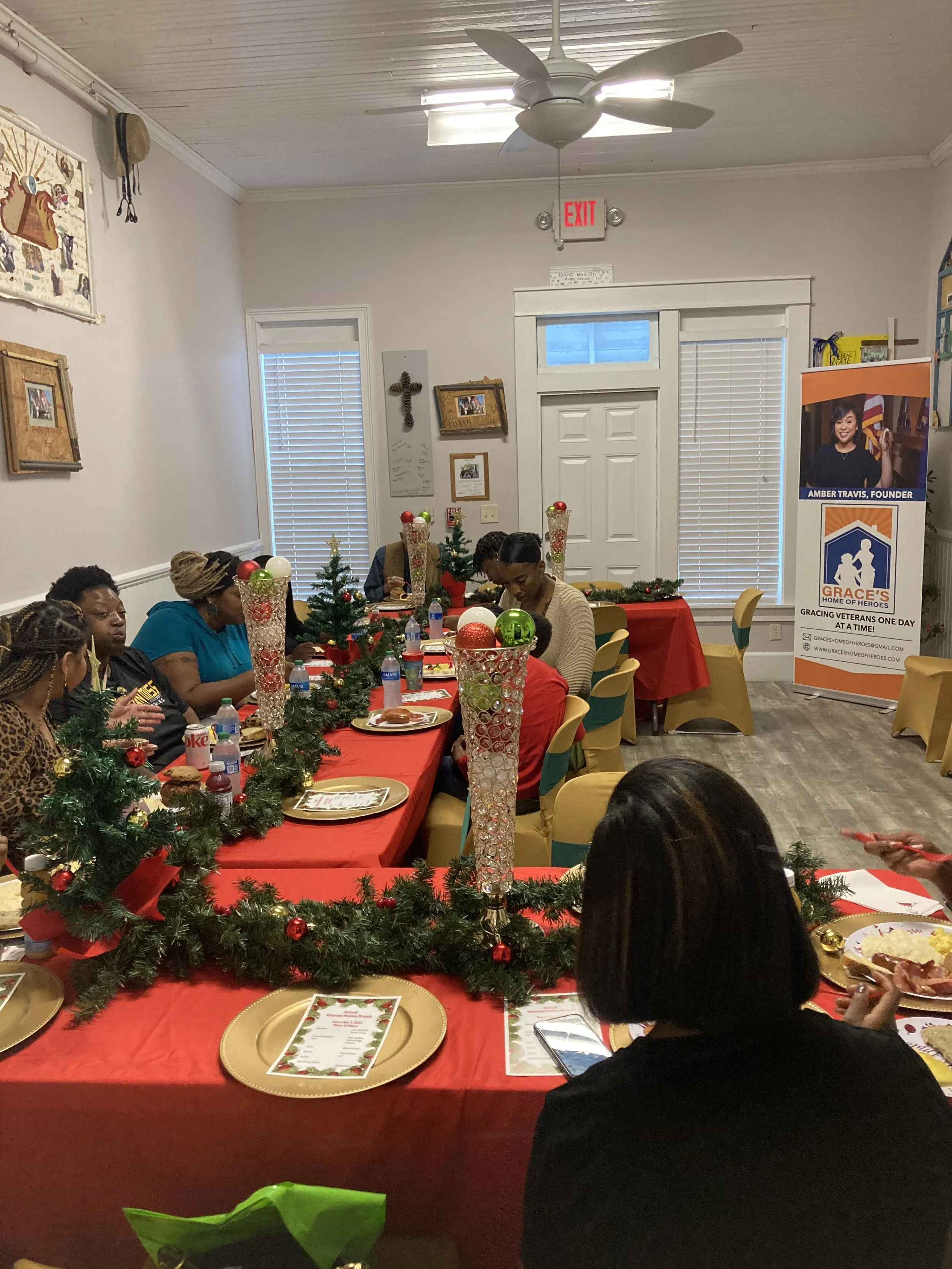 Each year, Grace’s Home of Heroes celebrates our veterans, with the Annual Veterans Holiday Brunch. For December 2022, with the help of our community partner, Humana, we were able to give all guests a ham or turkey for the holidays.